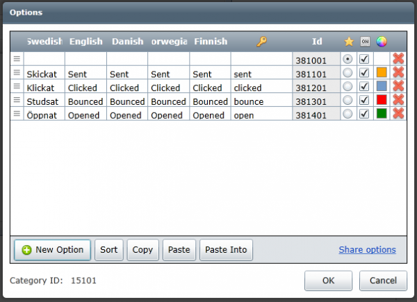 sendoutstatus Mailing status/Utskickstatus Option list Used to set status for the mailing. must contain correct option keys