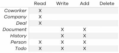 Create an API-user and generate an API-key for the user. The user needs appropriate rights to be able to search for, save and update multiple tables. Add the API-user in the group “Users” and also create a specific group for the user and configure policies for the group on the following tables.