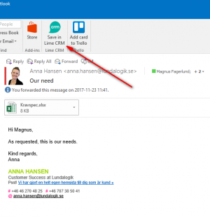 - Connect the e-mail conversation to a person, company and deal in Lime CRM.