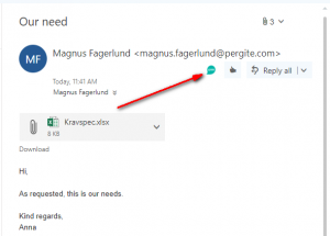 The Lime CRM add-on to Outlook web client is started by pressing the Lime CRM icon next to the reply button.