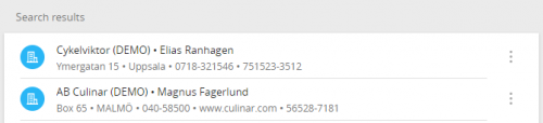 The search view for company, configured as the one above will give the following result in the search results.