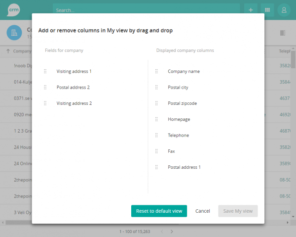 It is possible for users to set up their individual view, “My view” and switch between this one and the default view by pressing the “View” icon in the upper right corner.