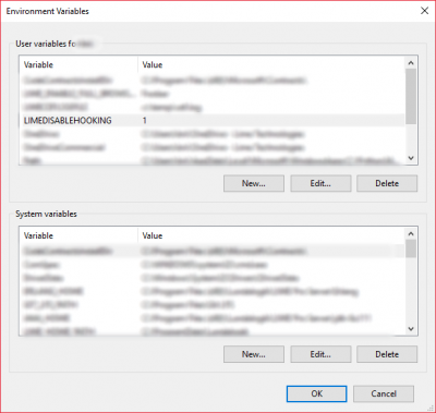 Sometimes Lime crashes when opening a WPF based interface, such as Bisnode One-by-One or the template manager. Why it happens to only some users is unknown, but it has to do with DLL-hooking. To disable the hooking, go to your environment variables, and set a variable named “LIMEDISABLEHOOKING”, with the value “1”, and log out/log in on your Windows account.