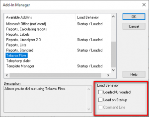 - Select “Telavox Flow” and check off “Loaded/Unloaded” and “Load on Startup” in “Load Behavior”.