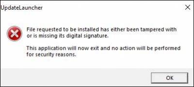 “File requested to be installed has either been tampered with or is missing its digital signatures.